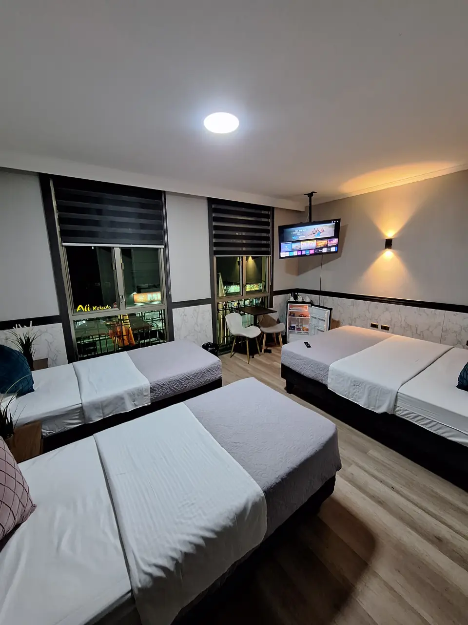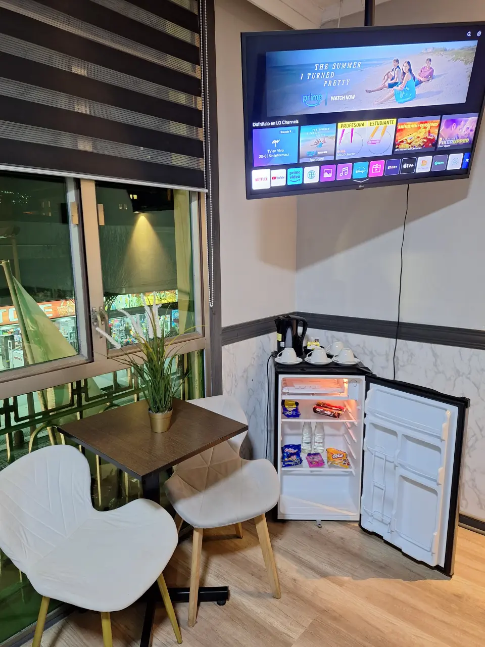 Con 20 m² de amplitud, esta suite está pensada para 3 a 4 personas que buscan comodidad y un ambiente acogedor. Equipada con una cama de dos plazas y dos camas individuales, baño privado, Wi-Fi, Smart TV de 42″ y mesa con dos sillas, ofrece lo necesario para compartir y descansar. La hermosa vista a la ciudad, junto con la calefacción por aire, asegura bienestar en cualquier época del año. Además, incluye frigobar, servicio de té y café con snacks, y es pet friendly, para que puedas disfrutar tu estadía acompañado de tu mascota. El desayuno continental incluido completa la experiencia con un inicio de jornada pleno y confortable.