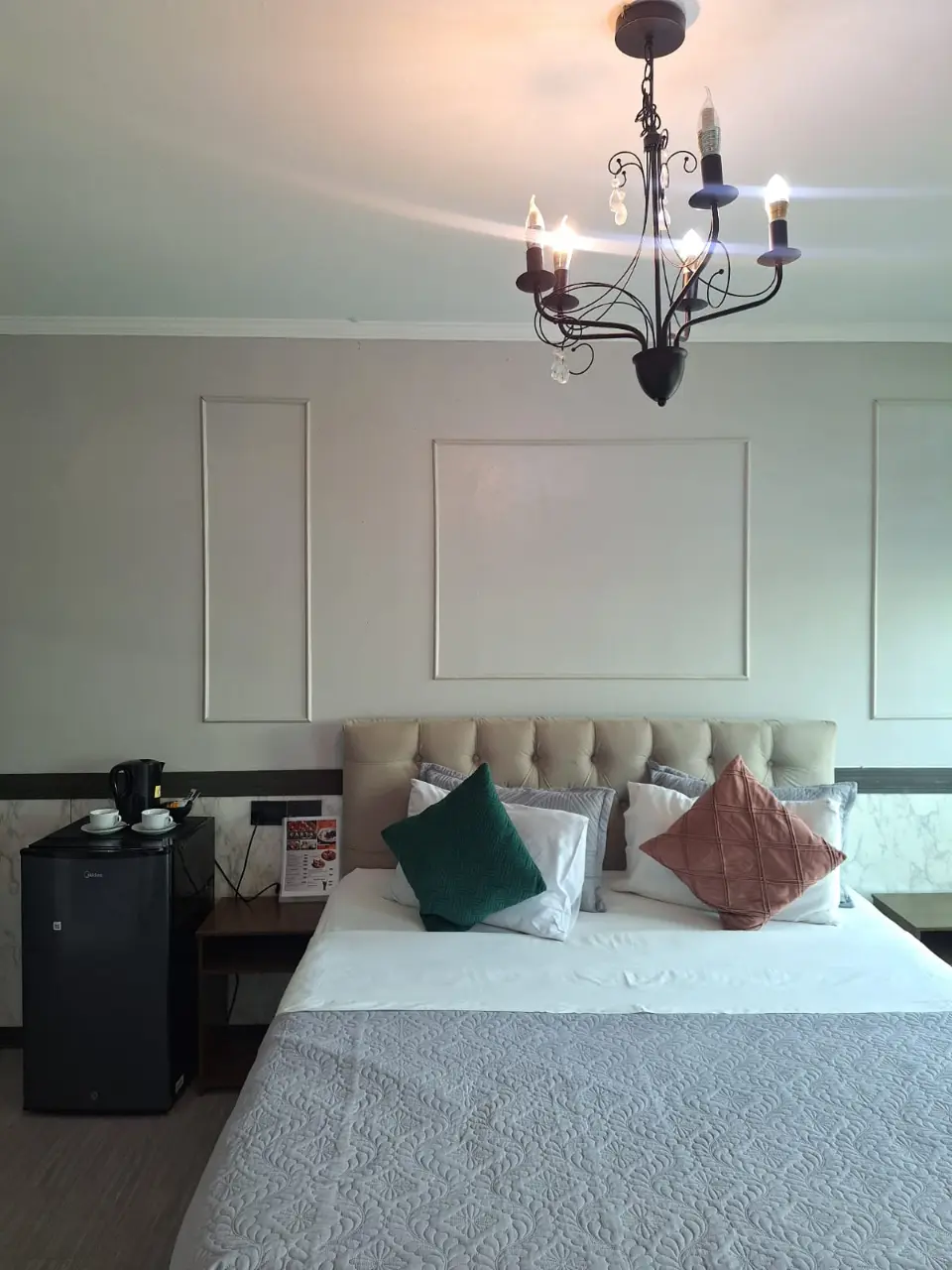 Una habitación de hotel económica es sencilla pero funcional, con una cama estándar, escritorio pequeño, baño privado con ducha, decoración minimalista y servicios básicos como Wi-Fi y televisión. Suelen estar ubicadas en zonas accesibles y ofrecen tarifas reducidas al prescindir de lujos adicionales.